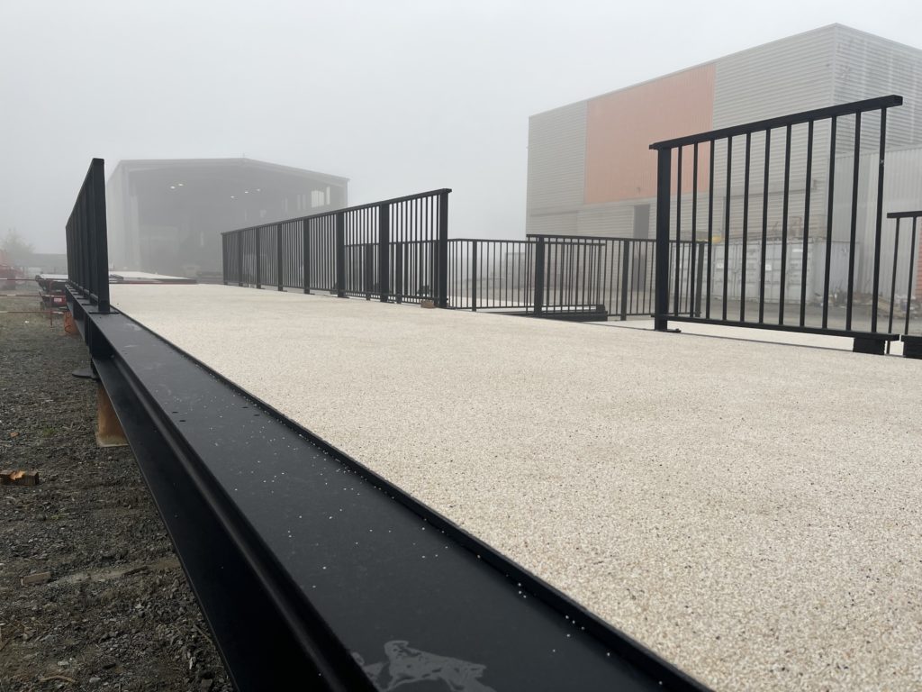 Nous proposons depuis 2018 (plus de 20 réalisations) le revêtement étancheité circulable pour ponts et passerelles acier.