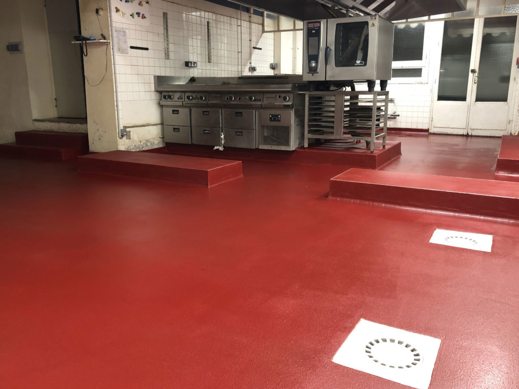 Sols de cuisines professionnelles (résine méthacrylate à durcissement rapide gamme FLOWFAST®).